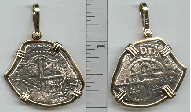 These genuine Atocha shipwreck coins have been mounted into a 14k bezel. They come with a Certificate of Authenticity signed by Mel Fisher, and of course include our guarantee of complete satisfaction.